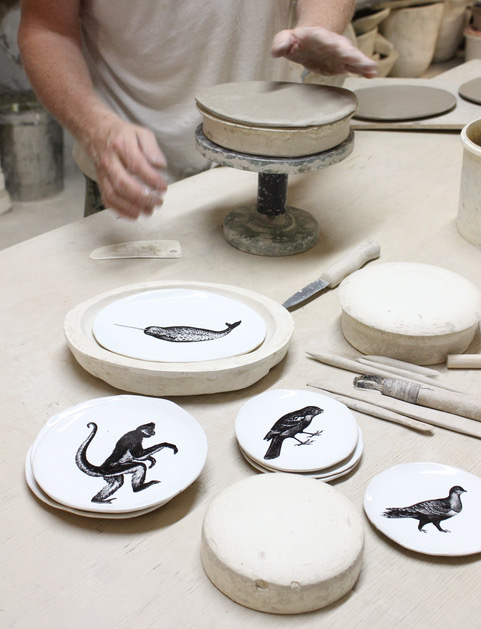 Eine Serie von Tellern in Sets für den Süper Store, sowie eine Reihe von neuen Motiven für das Kühn Keramik Universum: von wilden Affen und Vögeln bis hin zu toten Fröschen, wütenden Nashörnern und wilden Fabelwesen - es ist ein seltsamer Zoo ...