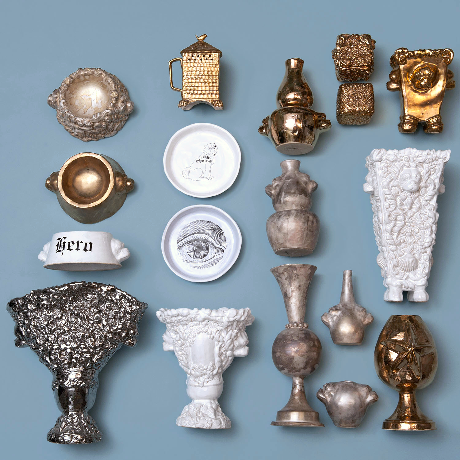 Material:  Steingut, farbige Glasuren oder mit einer Aufl age aus echtem Gold, Silber oder Platin (»de Luxe«)
